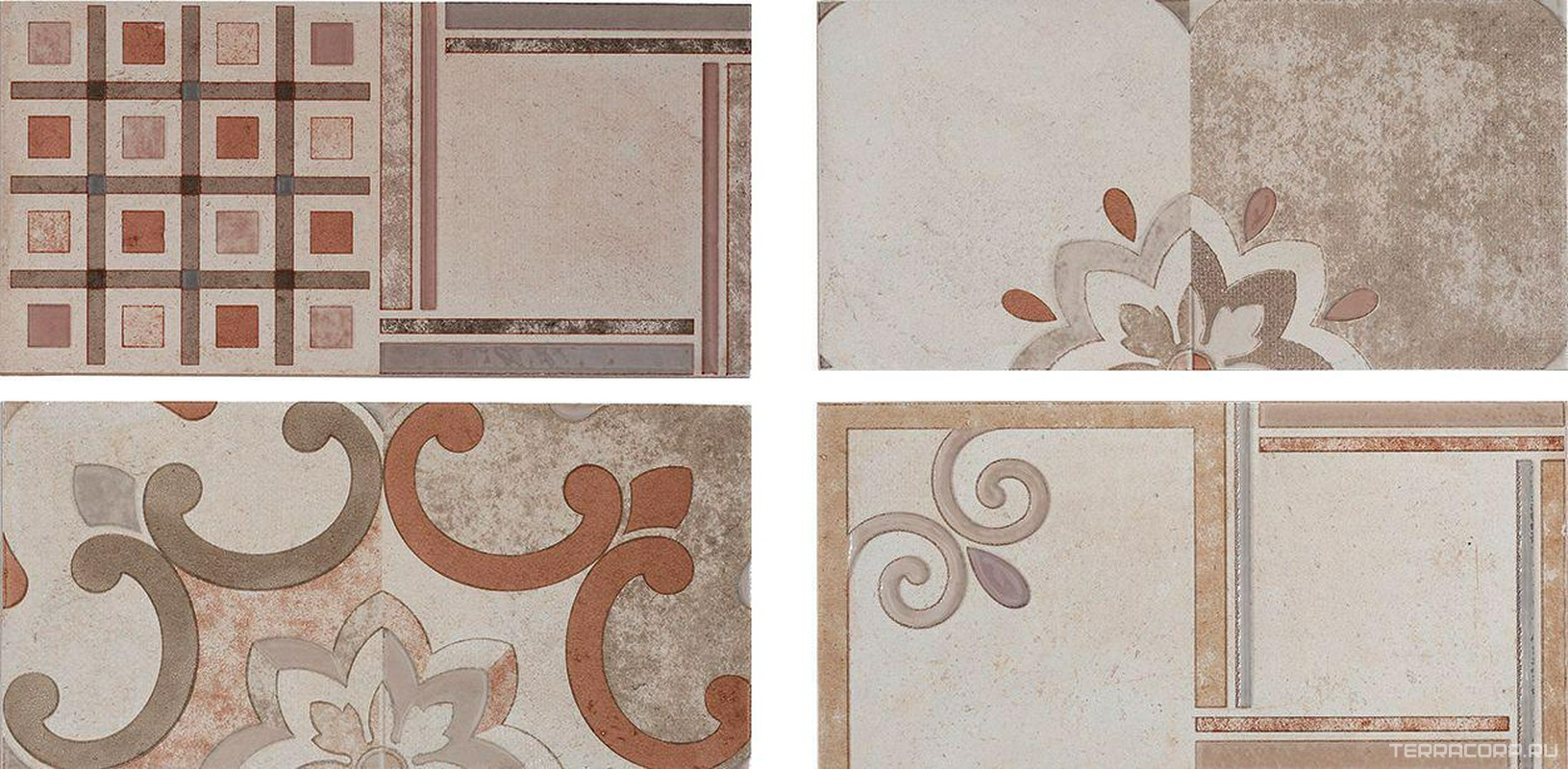 Керамический гранит (керамогранит) Serenissima Riabita il cotto Dec Inserto Vanity Warm s/4 20x40 Комбинированный