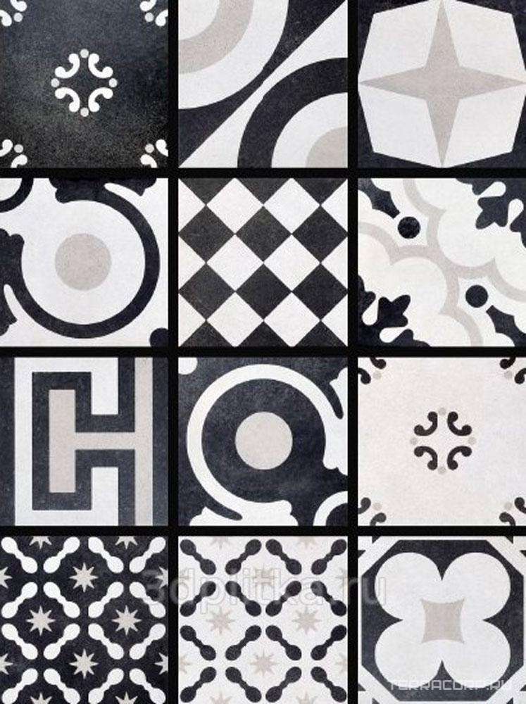 Керамический гранит (керамогранит) Fioranese коллекция Cementine Black & White Mix ZZ |20x20 Комбинированный