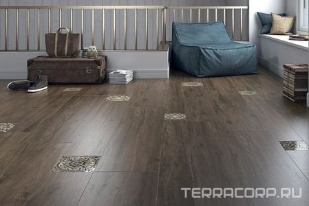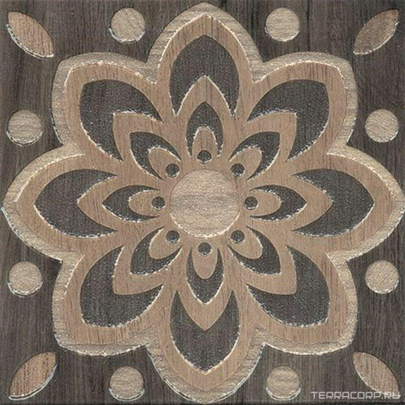 Керамический гранит (керамогранит) Kerama Marazzi коллекция Фратте Вставка Фратте серый цветок лаппатированный |20х20 Серый