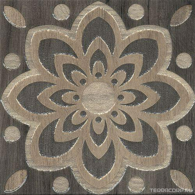 Керамический гранит (керамогранит) Kerama Marazzi Фратте Вставка серый цветок лаппатированный XX15х15 Серый