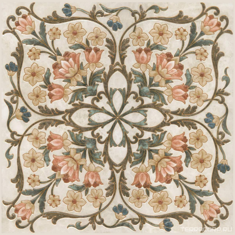 Керамический гранит (керамогранит) Kerama Marazzi коллекция Лирия Декор Лирия ковёр центр лаппатированный ХХ |40,2x40,2 Бежевый