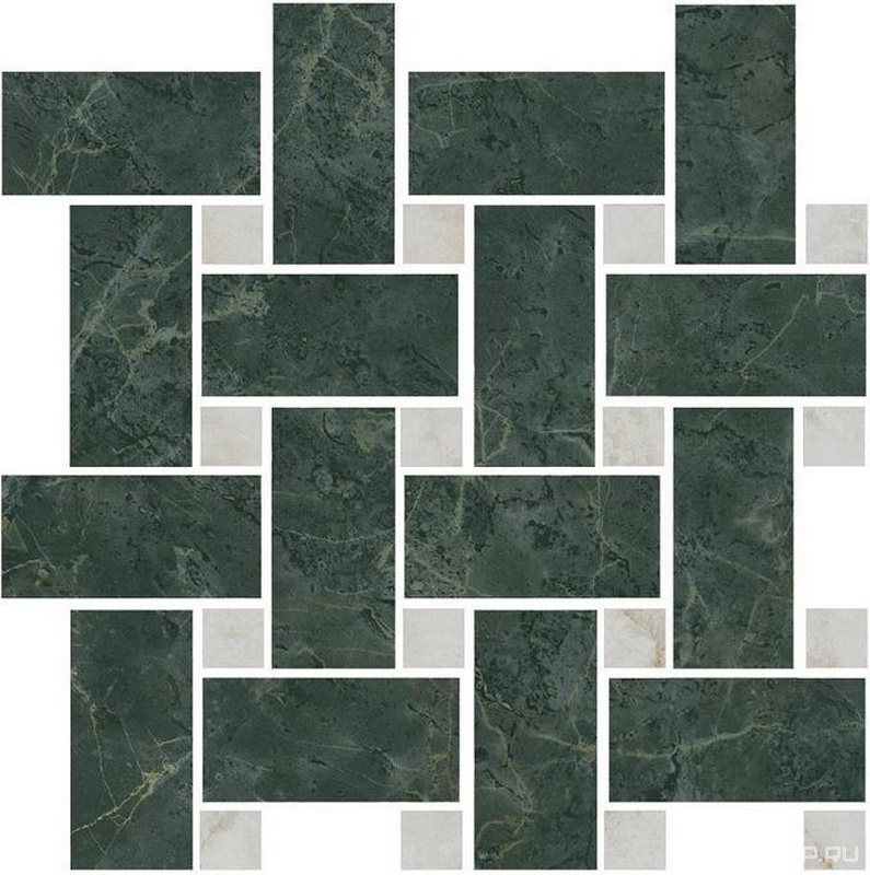 Керамический гранит (керамогранит) Kerama Marazzi коллекция Серенада Декор Серенада мозаичный зелёный лаппатированный 32x32 Комбинированный