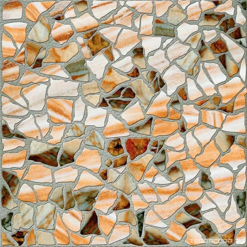 Керамический гранит (керамогранит) М-Квадрат коллекция Мюнхен Керамогранит Мюнхен "Камни" объемный штам коричнZZ l33х33 Коричневый
