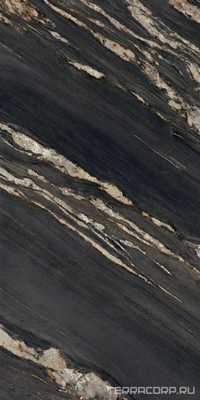 Керамический гранит (керамогранит) Ariostea коллекция Ultra Marmi Tropical Black Luc Shiny 6 mm ZZ 75x150 Комбинированный