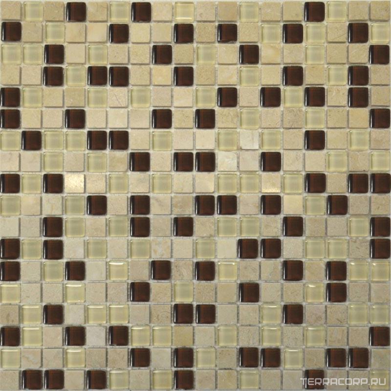 Мозаика Мастера Керамики коллекция Glass & Stone Мозаика Glass & Stone 2027 микс мрамор бежевый-коричневый-молочный (чип 15х15)|30х30 Комбинированный