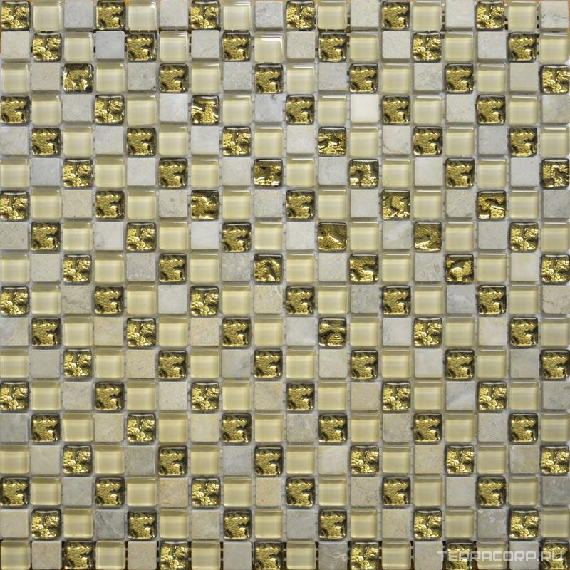 Мозаика Мастера Керамики коллекция Glass & Stone Мозаика Glass & Stone 2028 диагональ мрамор бежевый молочный-золото XX|30х30 Бежевый