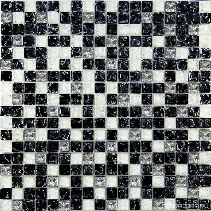 Мозаика Мастера Керамики коллекция Glass Мозаика Glass 503 микс черный колотый-белый колотый-платина ZZ|30х30 Комбинированный