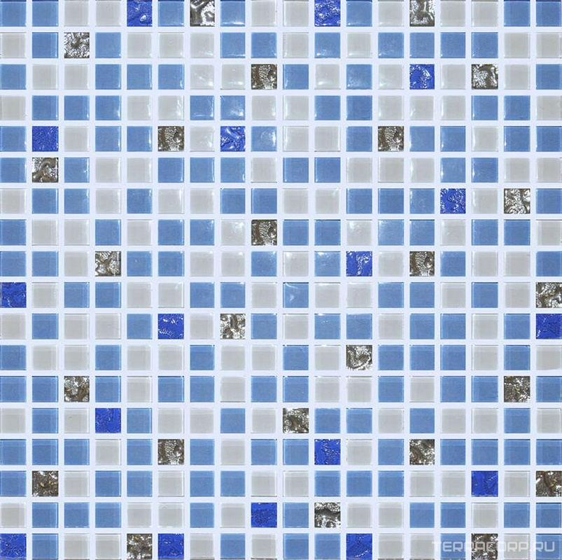 Мозаика Мастера Керамики коллекция Glass Мозаика Glass 1029 микс синий-платина (чип 15х15мм)ZZ|30x30 Комбинированный