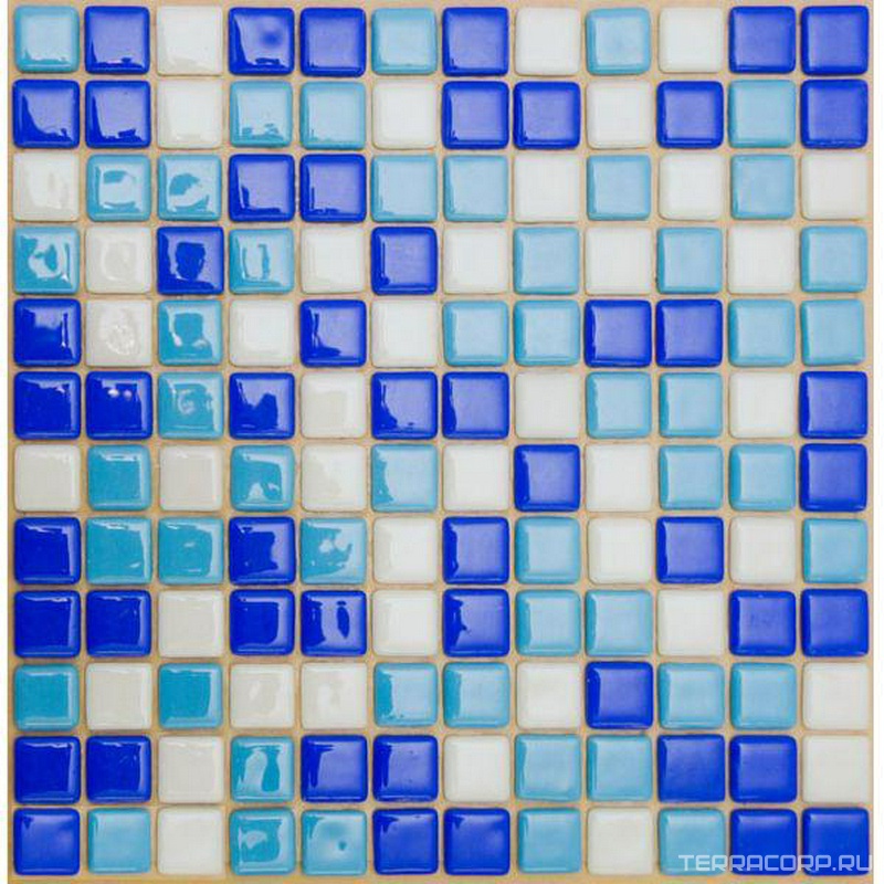 Мозаика Мастера Керамики коллекция Glass mix Мозаика 25FL-S-035 (синий кобальт+голубой +белый) бассейновая (чип 2.5x2.5) ZZ|31.5x31.5 Комбинированный