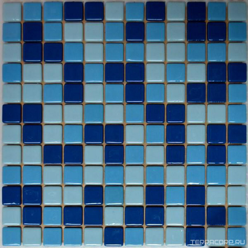Мозаика Мастера Керамики коллекция Glass mix Мозаика 25FL-S-045 (синий+голубой +голубой 10%) бассейновая (чип 2.5x2.5) ZZ|31.5x31.5 Комбинированный