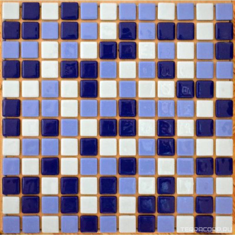 Мозаика Мастера Керамики коллекция Glass mix Мозаика 25FL-S-080 (син. кобальт +син. кобальт10%+белый) бассейновая (чип 2.5x2.5)XX ZZ|31.7x31.7 Комбинированный