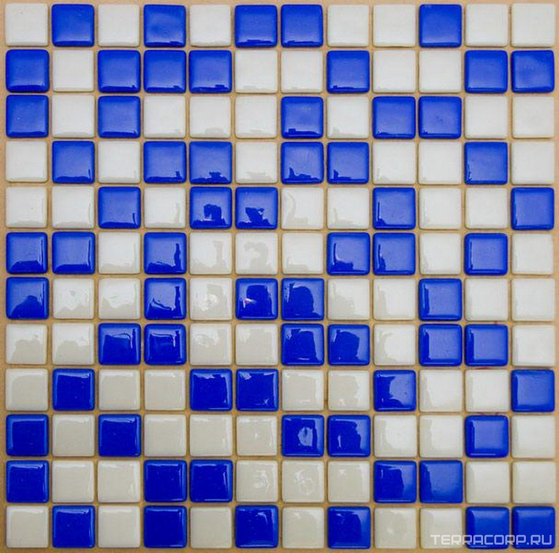 Мозаика Мастера Керамики Glass mix Мозаика 25FL-S-033 (синий кобальт+белый) бассейновая (чип 2.5x2.5) ZZ31.5x31.5 Комбинированный