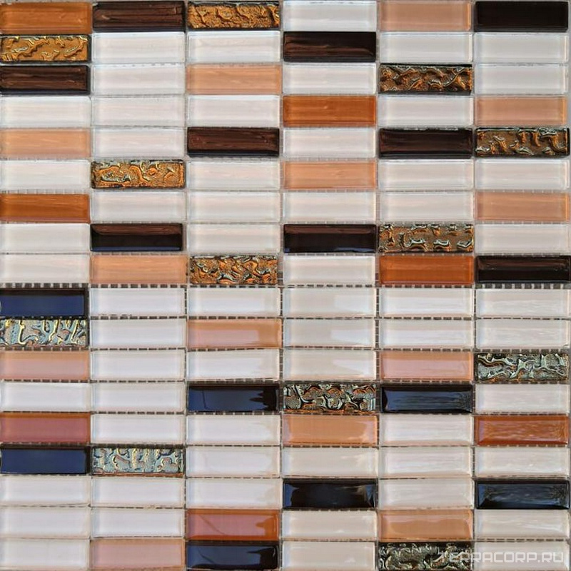Мозаика Мастера Керамики Glass Мозаика 2368 микс белый-бежевый разбеленный-бежевый коричневый-золото риф.низ 15х48 ZZ30х30 XX Комбинированный