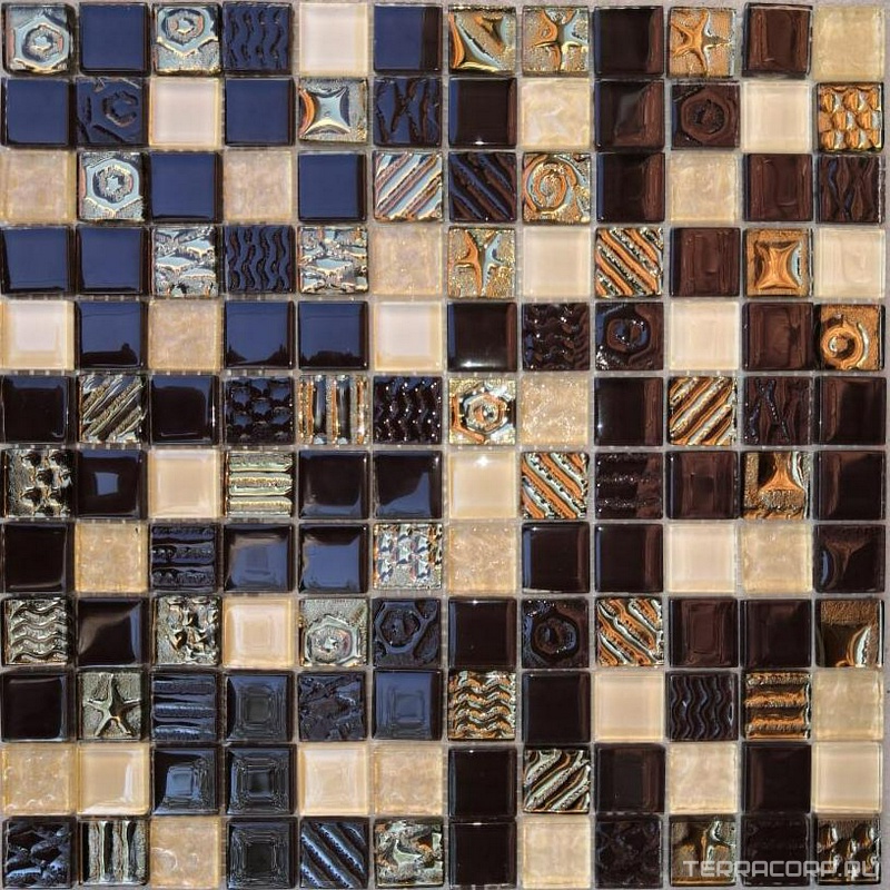Мозаика Мастера Керамики Glass Мозаика 2172 микс золото рисунок низ-шоколад рисунок верх-шоколад-молочный риф.верх-молочный 23х23 ZZ30х30 XX Комбинированный