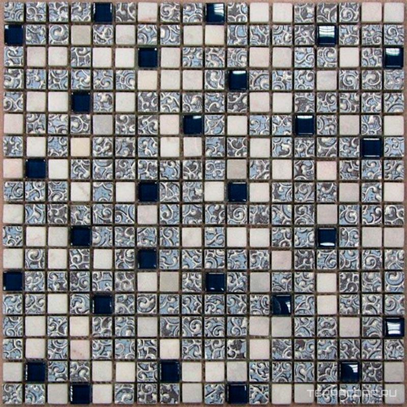 Мозаика Bonaparte коллекция Мозаика стеклянная с камнем Dreams Blue (15x15x8) ZZ 30x30 Комбинированный