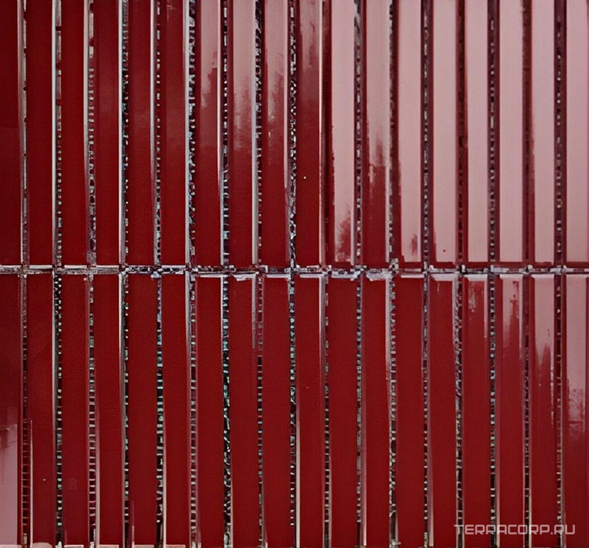 Мозаика Porcelain Mosaic коллекция Strip Mosaic 1.5х14.5 Y15F736 Красный глянцевый 29.4х31.3 Красный