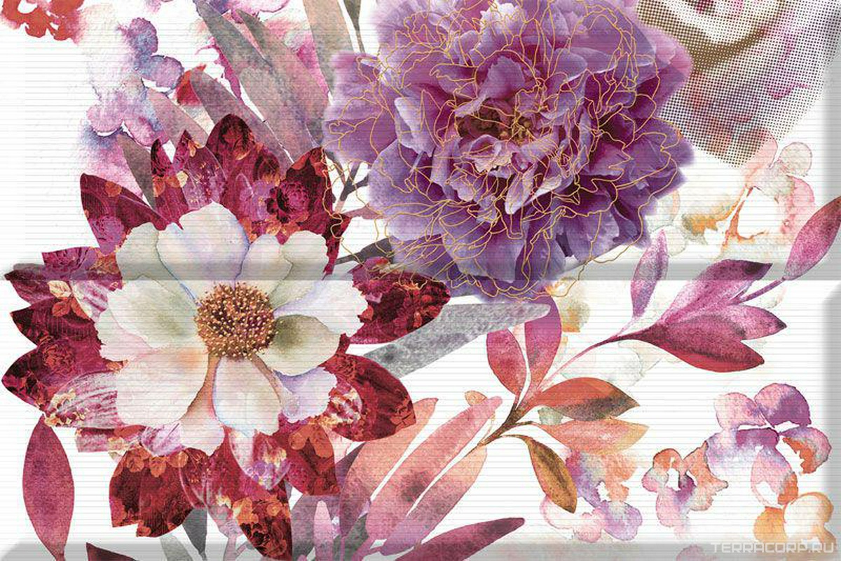 Керамическая плитка Absolut Keramika коллекция Aure Com.Savage Flowers Berenjena 02 XX |30x45 Комбинированный