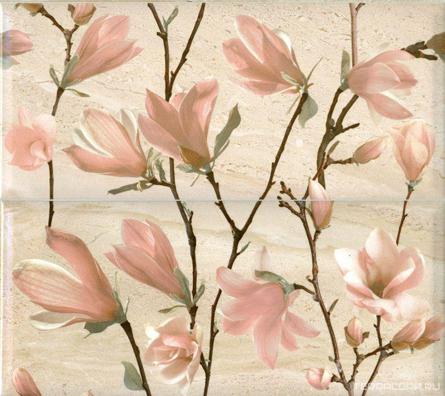 Керамическая плитка М-Квадрат коллекция Легенда Панно Magnoliya (2 плиты) XX l40x45 Комбинированный