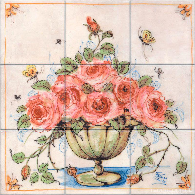 Керамическая плитка Kerama Marazzi Форио Панно Розы (из 9 частей 15х15) 45х45 Комбинированный