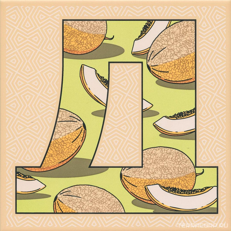 Керамическая плитка Kerama Marazzi коллекция Сад-огород Декор Сад-огород Дыня матовый ZZ 20x20 Комбинированный