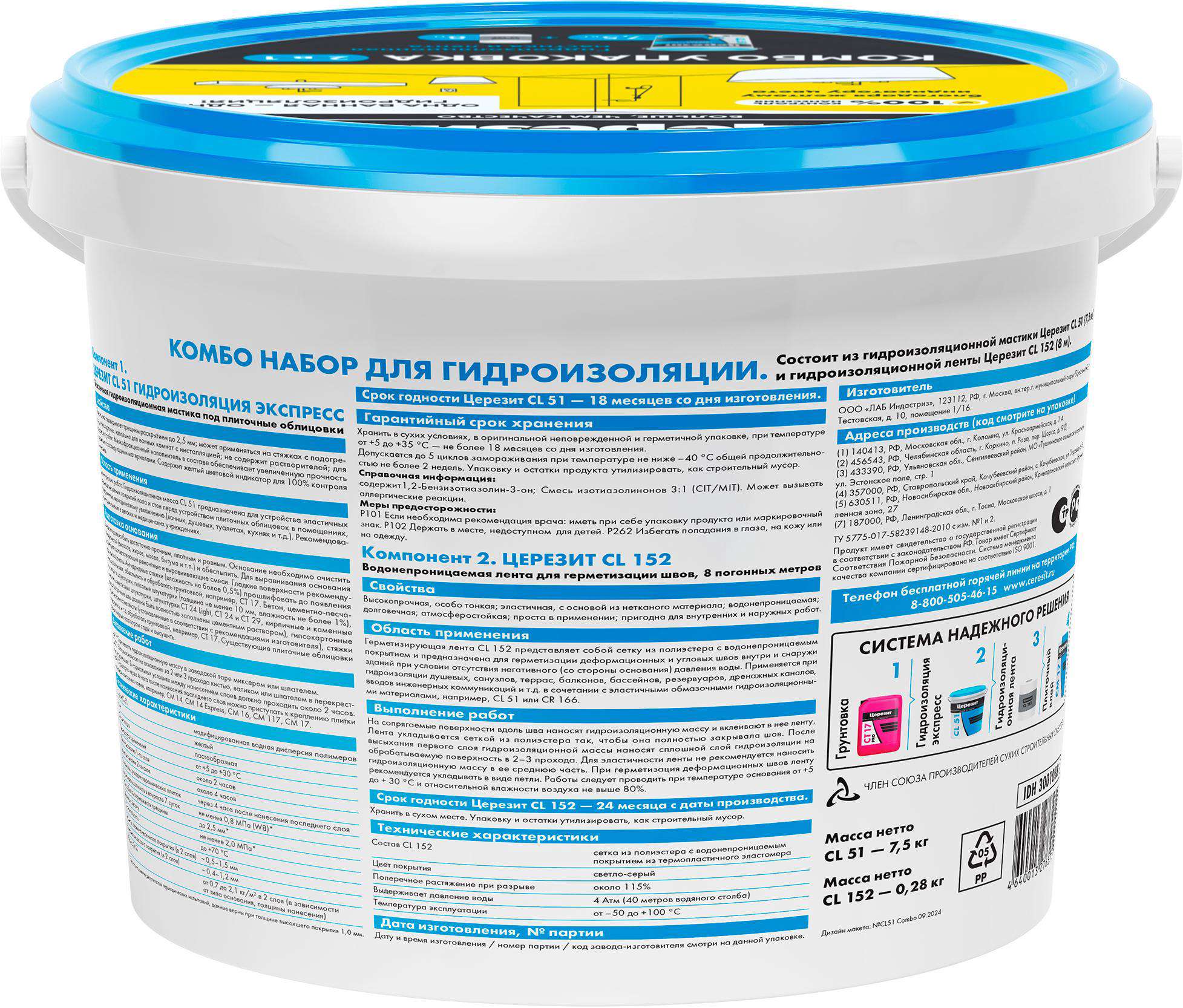Гидроизоляция Церезит коллекция CL 51 Ceresit Комбо CL 51/8 + СL152/8, Эластичная полимерная гидроизоляция и уплотнительная лента ZZ n/a