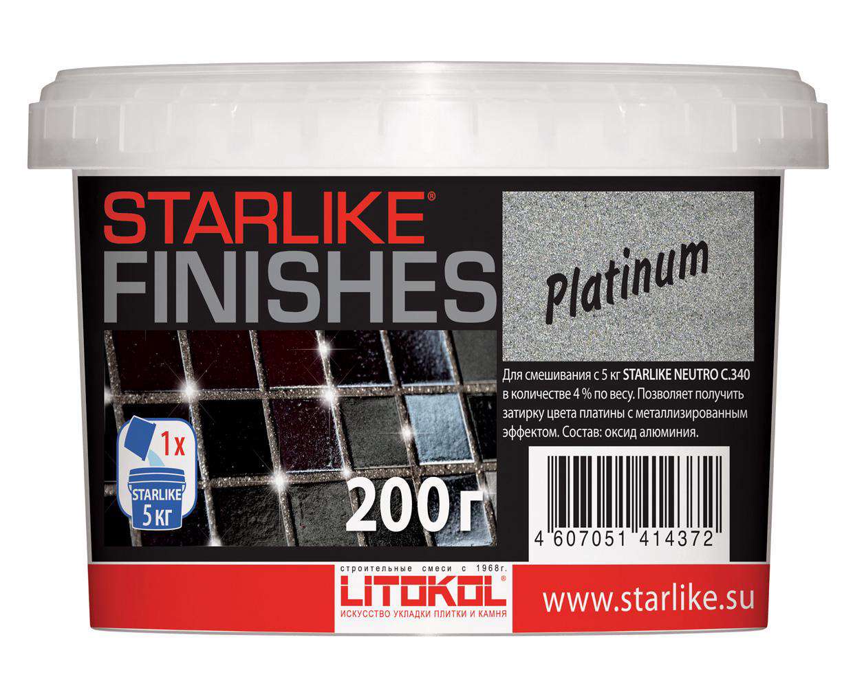 Материалы для укладки Litokol коллекция Starlike Finishes Добавка д/затир. Starlike PLATINUM - платинового цвета 0,1 кг. ZZ Стальной
