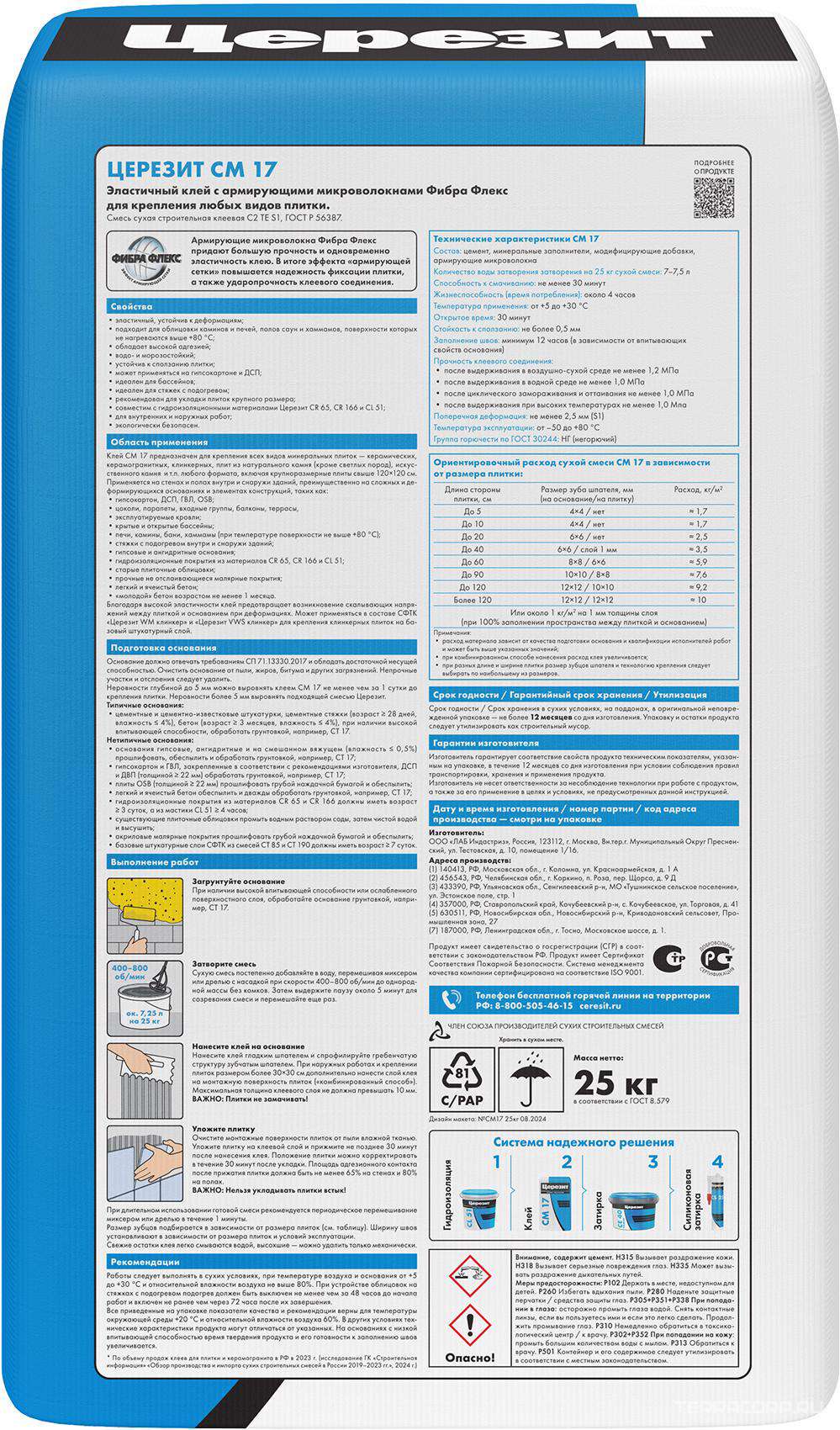 Материалы для укладки Церезит коллекция CM 17 Клей Клей для крупноформ. керамогранита СМ17 25 кг. n/a