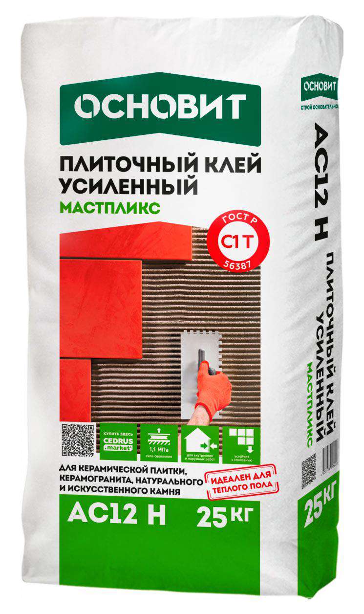 Материалы для укладки Основит коллекция AC12 H Мастпликс Плиточный клей усиленный ОСНОВИТ МАСТПЛИКС AC12 H (С1Т) 25 кг. n/a