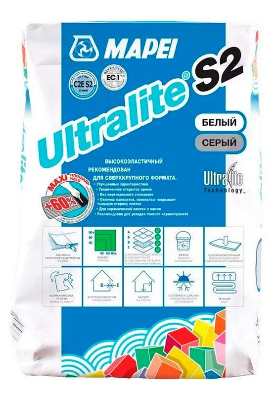 Материалы для укладки Mapei коллекция Ultralite ULTRALITE S2 BIANCO высоко эластичный клей на цементной основе (15кг) Белый