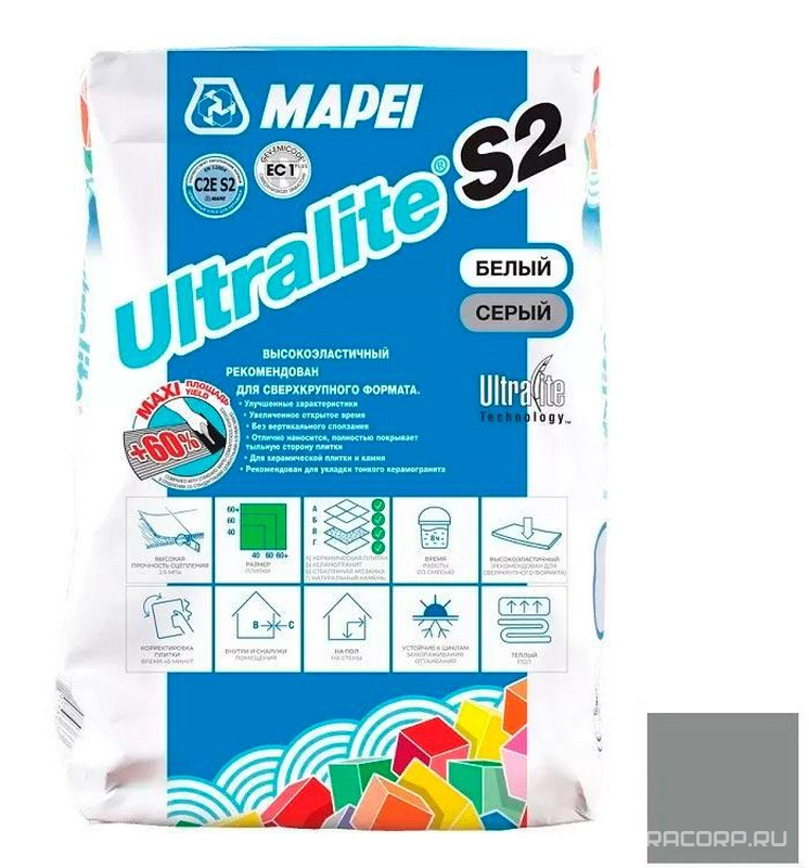 Материалы для укладки Mapei коллекция Ultralite ULTRALITE S2 GRIGIO высоко эластичный клей на цементной основе (15кг) ZZ Серый