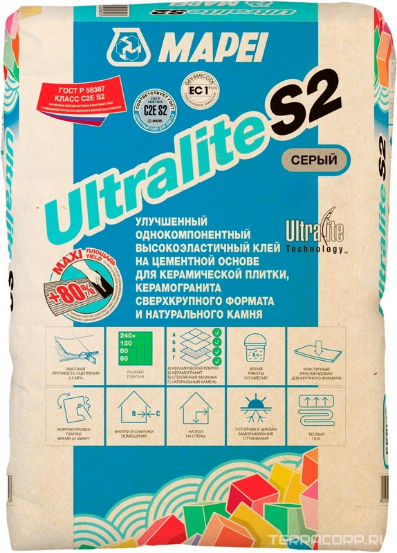 ULTRALITE S2 GRIGIO высоко эластичный клей на цементной основе (15кг) ZZ Mapei Ultralite 1201515