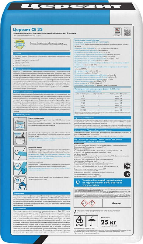 Материалы для укладки Церезит коллекция CE 33 Затирка 2-5мм S(серая) 25 кг ZZ Серый