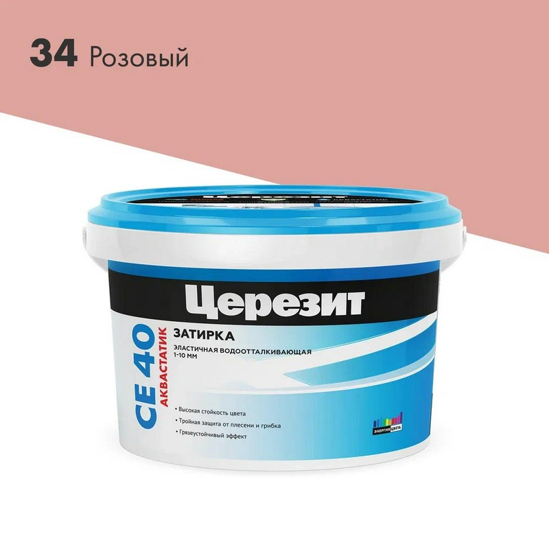 Материалы для укладки Церезит коллекция CE 40 Затирка эласт/водоот. противогр. 1-10мм СЕ 40 (розовый 34) 2 кг XX Розовый