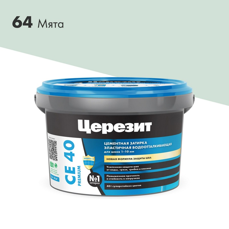 Материалы для укладки Церезит коллекция CE 40 Затирка эласт/водоот. противогр. 1-10мм СЕ 40 (мята 64) 2 кг Зеленый