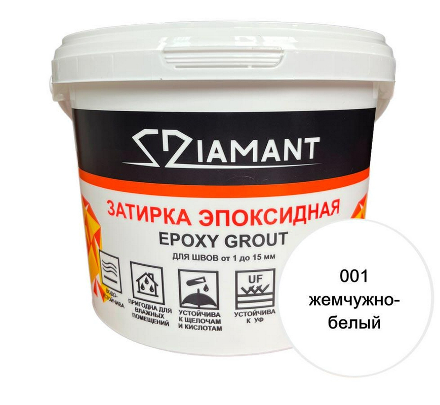 Материалы для укладки Антураж коллекция Диамант Затирка эпоксидная "Диамант" 001 жемчужно-белый, 1кг.XX Белый