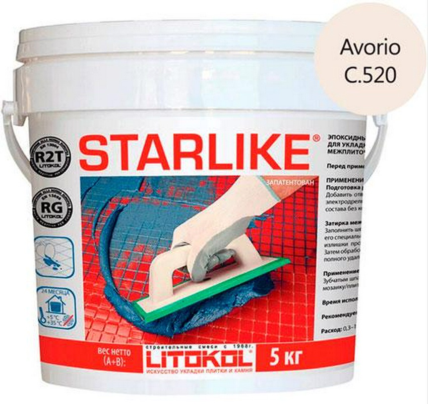 Материалы для укладки Litokol коллекция Starlike Затирка Starlike AVORIO C.520 слоновая кость 5 кг. ZZ Бежевый