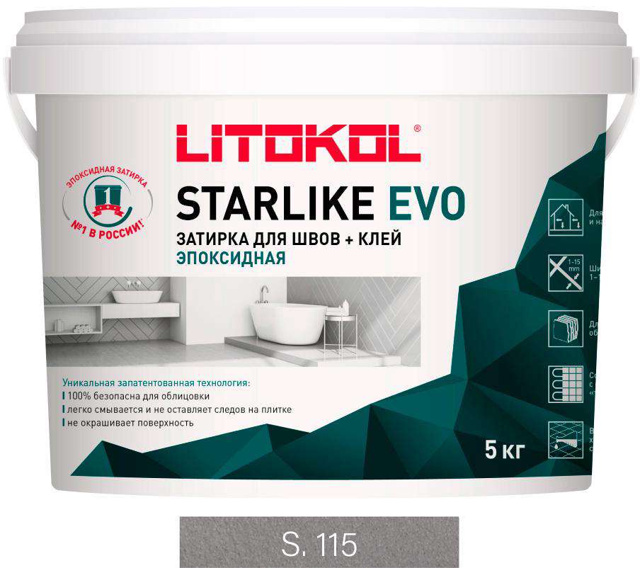 Материалы для укладки Litokol коллекция Starlike EVO Затирка Starlike EVO GRIGIO SETA S.115 5 кг. ZZ Серый
