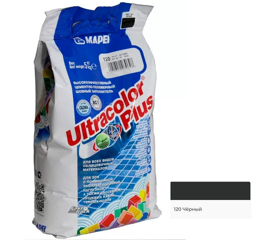 Материалы для укладки Mapei коллекция ULTRACOLOR PLUS ULTRACOLOR PLUS затирка д/швов N120/5кг (Черный) ZZ Черный
