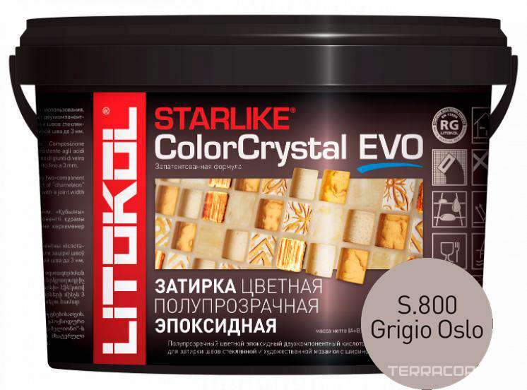 Материалы для укладки Litokol коллекция Starlike EVO Затирка Starlike Color Crystal EVO GRIGIO OSLO S.800 2,5 кг. ZZ Серый