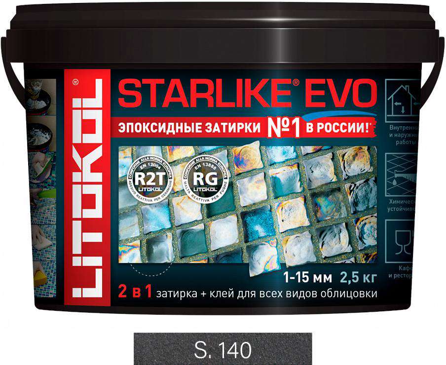 Материалы для укладки Litokol коллекция Starlike EVO Затирка Starlike EVO NERO GRAFITE S.140 2,5 кг. ZZ Черный