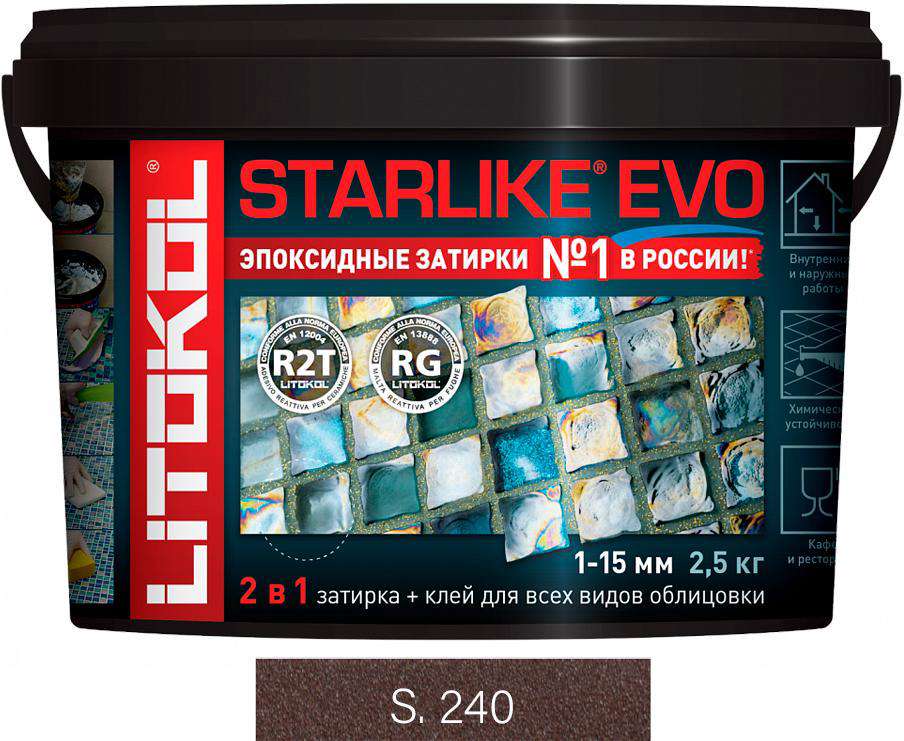 Материалы для укладки Litokol коллекция Starlike EVO Затирка Starlike EVO MOKA S.240 2,5 кг. ZZ Коричневый