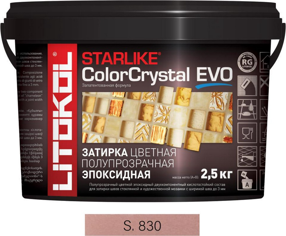 Материалы для укладки Litokol коллекция Starlike EVO Затирка Starlike Color Crystal EVO Rosa Kyoto S.830 2,5 кг. ZZ Розовый