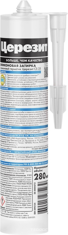 Материалы для укладки Церезит коллекция CS 25 Эластичная силиконовая затирка CS 25, черный (20) 280мл. Черный