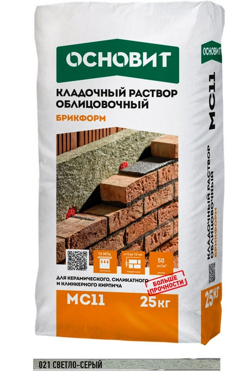Отделка фассадов Основит коллекция МС11 Брикформ Кладочный раствор светло-серый 021 ОСНОВИТ БРИКФОРМ MC-11, 25 кг. ( п.п.) ZZ 021 ОСНОВИТ БРИКФОРМ MC-11, 25 кг. Серый