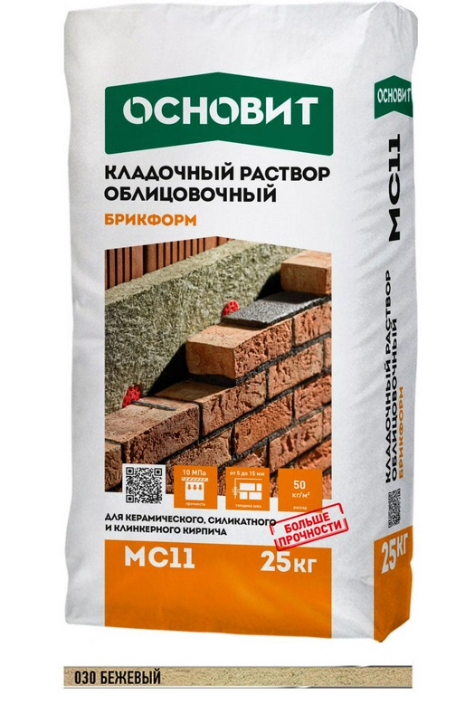 Отделка фассадов Основит коллекция МС11 Брикформ Кладочный раствор бежевый 030 ОСНОВИТ БРИКФОРМ MC-11, 25 кг. ( п.п.) ZZ Бежевый