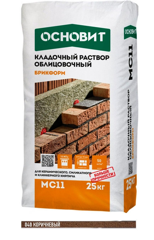 Отделка фассадов Основит коллекция МС11 Брикформ Кладочный раствор коричневый 040 ОСНОВИТ БРИКФОРМ MC-11, 25 кг. ( п.п.) ZZ Коричневый