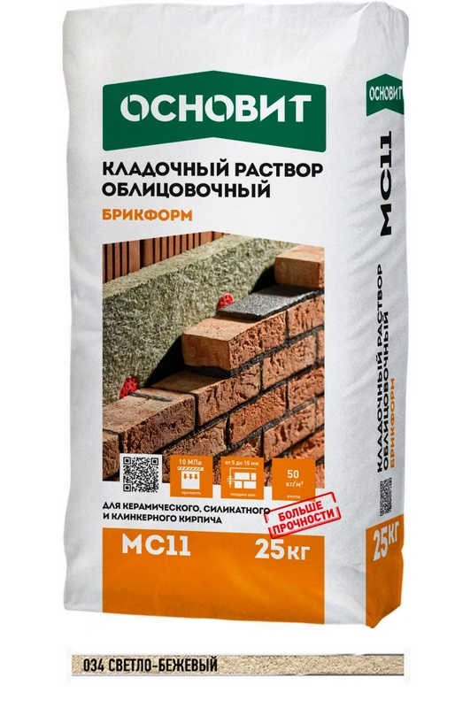 Отделка фассадов Основит коллекция МС11 Брикформ Кладочный раствор светло-бежевый 034 ОСНОВИТ БРИКФОРМ МС11 (25 кг) (кратность по запросу) ( п.п.) ZZ n/a