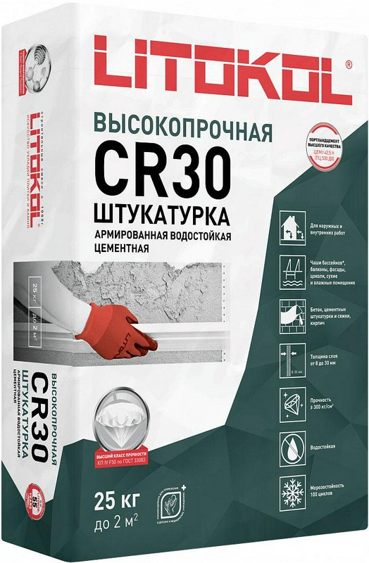 Внутренняя отделка Litokol коллекция LitoKol Цемент.состав для выравнивая стен и потолков LitoKol CR30 25 кг. ZZ Серый