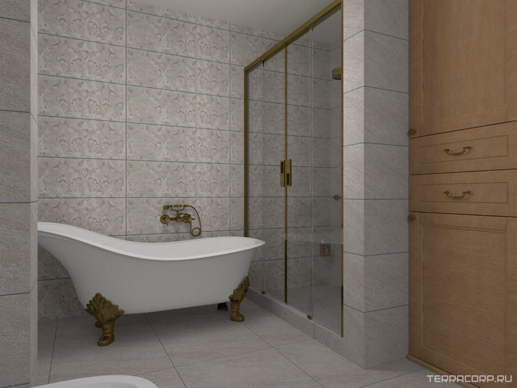 Готовый дизайн-проект Ванная комната из плитки КМ Гренель