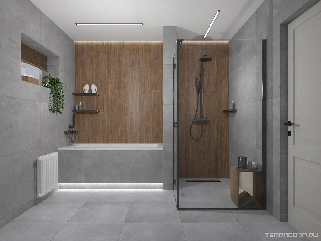 Готовый дизайн-проект №2012433 Ванная с душевой Exterior Ceramica Industrial Beton